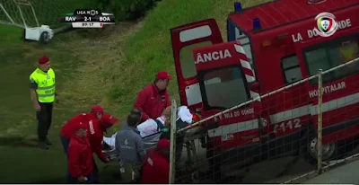 e natural seria o motorista deslocar a ambulância para uma zona plana o mais próximo possível do atleta(o estádio tem condições para isso), pois até a maca usada, não tinha condições para usar as