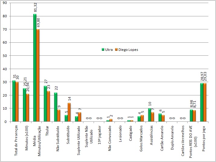 Na média de pontos por jogo, Ukra fez melhor do que Gaspar e Tarantini, na época passada, mas n~´ao do que Tomás, Atsu e a primeira de Tarantini.