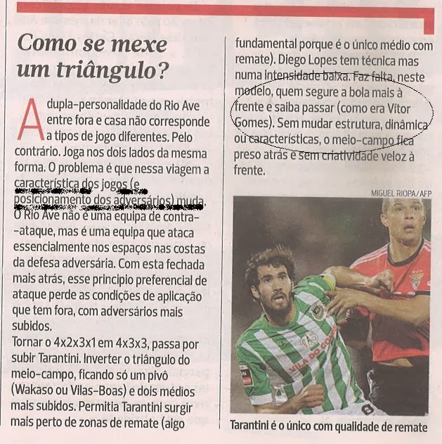 O Rio Ave perdeu por 6-1 na luz,muito por culpa de um jogar posicional errado. Nuno quis inventar sem lógica de interpretação, o 5-2-3 estratégico foi um fracasso total, baixar o bloco e as linhas anteciparam o desenrolar do resultado. Retirar o pivot mais ofensivo do sector intermediário deu espaço para o Benfica acelerar processos e circular a bola a um ritmo mais elevado. Um bloco defensivo de 3 centrais, sem rotinas de processos e desorganizado foi muito permeável. Inventar um sistema táctico perto do fim desta liga mostra incompetência e pouca leitura do jogar da equipa nesta fase da época. Perder a identidade do 4-2-3-1 foi oferecer meia dúzia de ovos a este Benfica muito forte e que assim goza uma Páscoa muito mais gostosa. O Rio Ave ontem foi o exemplo mais claro de como perder um jogo antes deste se iniciar, nunca deves perder a tua identidade e modelo de jogo,seja com que adversário for e em que campo o defrontares, é a minha ideia de ler o jogo,não basta querer ganhar o jogo antes de mais temos que o perceber e o saber ler e preparar,espero que o colectivo se recomponha para o Dragão»