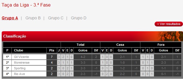 ACTualizo: Dando-se o caso de leões e vila-condenses terminarem a terceira jornada com o mesmo número de golos marcados e sofridos, como agora sucede, será a média de idades dos jogadores utilizados durante esta fase a decidir quem passa às meias-finais. A equipa com a média de idades mais baixa, logo mais nova, terá, previsivelmente, de enfrentar o Sporting de Braga no jogo de acesso à final.