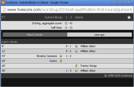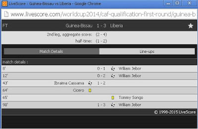 Hat-trick pela Libéria hoje frente à Guiné Bissau (que tinha no onze inicial o nosso ex-jogador Cícero).