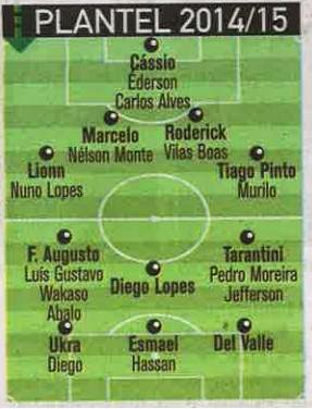 Se as minhas informações estiverem corretas, ontem estiveram presentes estes: Ederson, Cássio e Carlos Alves; Nuno Lopes; Tiago Pinto e Murilo; Marcelo, André Vilas Boas; Roderik; Nelson Monte, Silvério Wakaso, Luis Gustavo, Abalo, Tarantini, Jeferson e Diego Lopes; Ukra, Ernest, Diego, Hassan, Esmael e Igor;