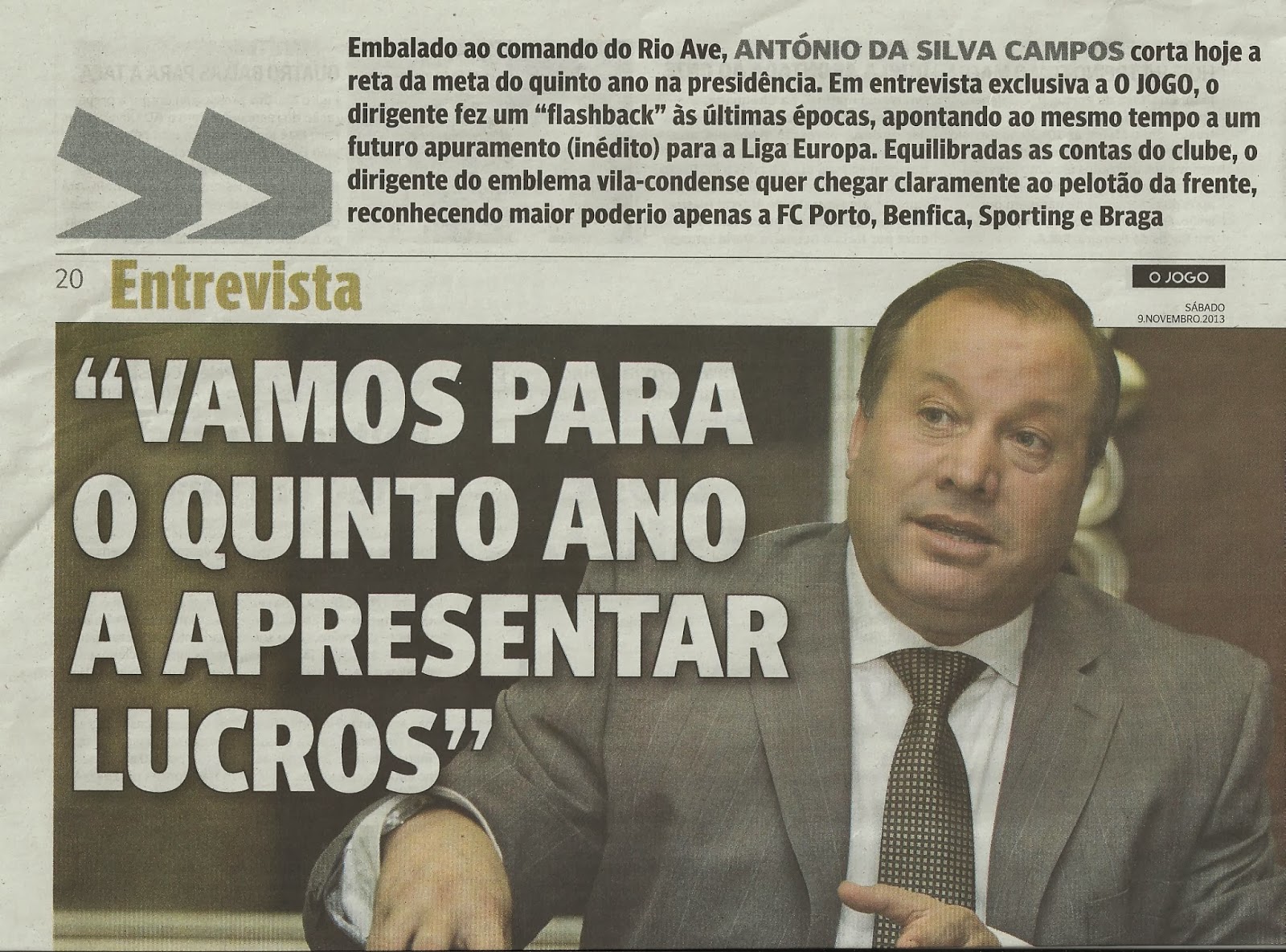 O Jogo é o único jornal que não se esquece dos 5 anos de ASC no Rio Ave e publica uma entrevista de duas páginas com o nosso presidente.